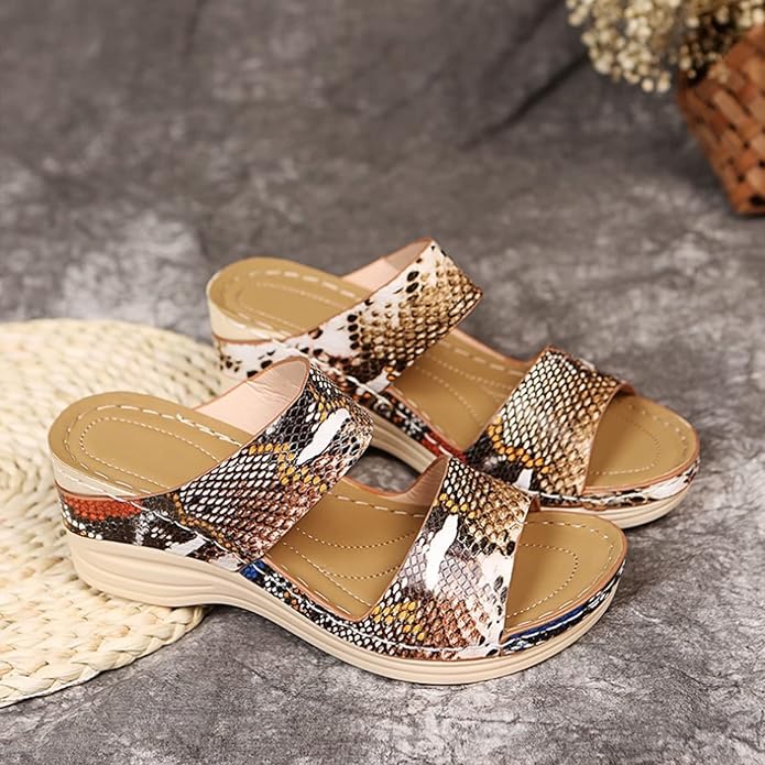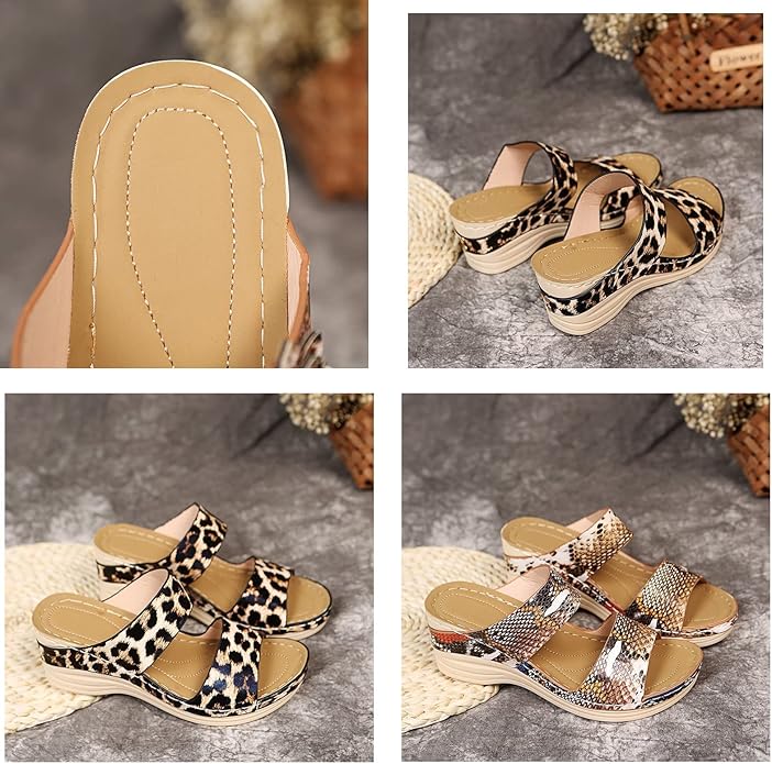 2025 New Leopard Leather Wedge Soft Sole Sandals ——With a three arch support design and a soft sole to keep your feet comfortable, health safety, and style on point!